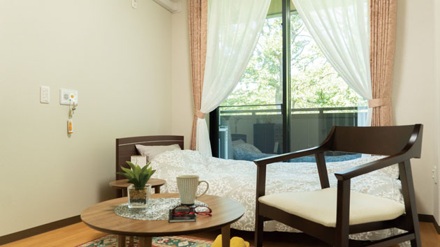 | 居室設備 | 介護ベッド・エアコン・クローゼット・カーテン・照明器具・トイレ・洗面台・緊急コール等 |