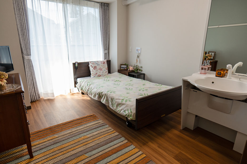 | 居室設備 | 介護ベッド・エアコン・クローゼット・カーテン・照明器具・トイレ・洗面台・緊急コール等 |