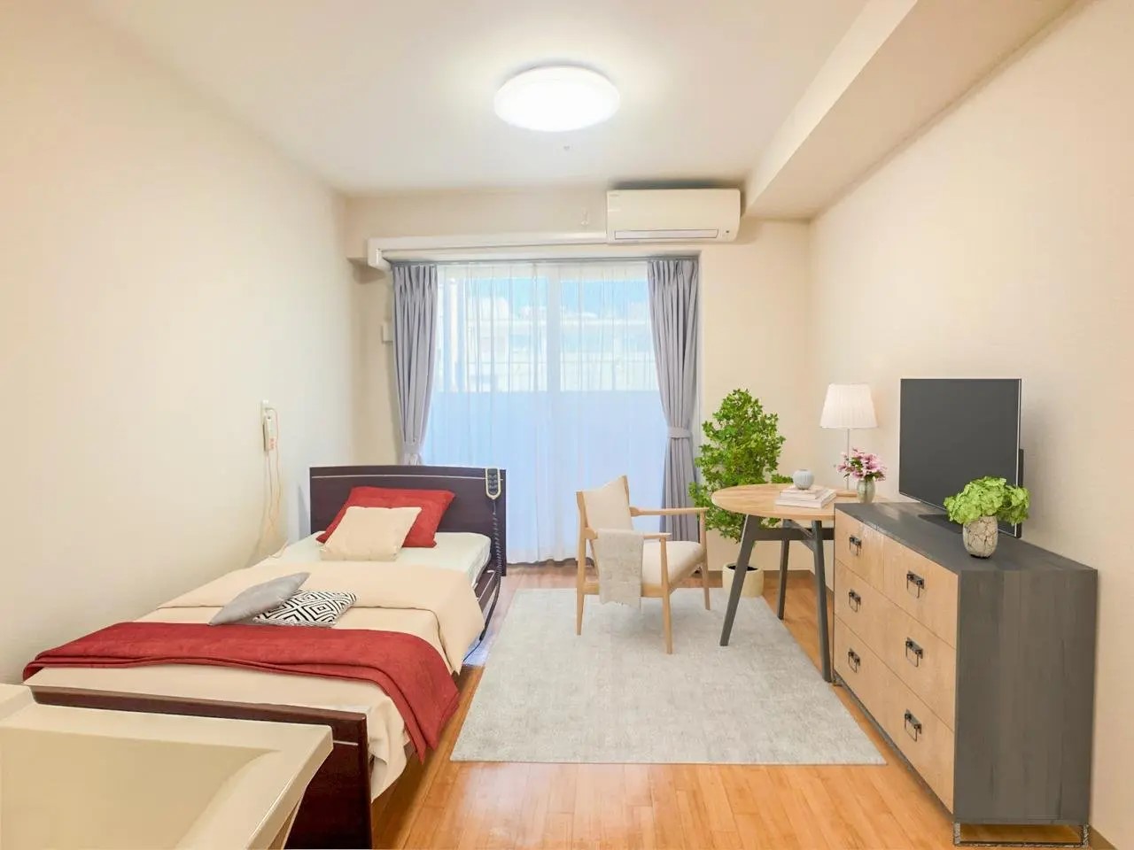 | 居室設備 | エアコン、洗面台、トイレ、ケアコール、スプリンクラー、介護ベッド |