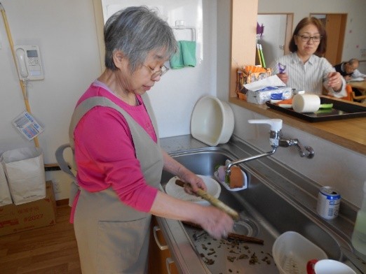 料理のお手伝いや居室の清掃のサポートなど、リハビリ活動もご用意しています