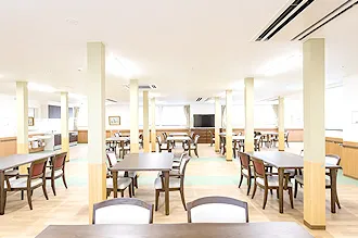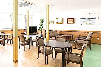 ご入居者様同士の談笑の場として利用できる、広い談話コーナーがございます。 楽しく、くつろいでいただける空間となっています。