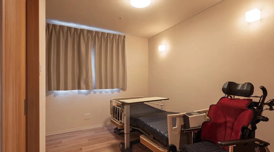 | 共用設備 | トイレ3ヶ所(うち1ヶ所車椅子対応可)、共用浴室、共用特浴室1(ストレッチャー浴)、共有リビング、共用テレビ、屋外共用スペース(ウッドデッキ・中庭)、家族キッチン、家族宿泊室 |