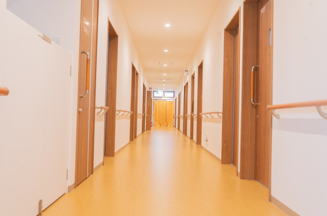 | 居室設備 | エアコン、ナースコール、フローリング、フラットフロア、人感センサー、地上波アンテナ、引き戸式ドア(玄関)、照明器具、空調換気設備、モニターカメラ見守り可、車椅子無償貸与、避難設備、防火カーテン、防災設備、電動介護ベッド |