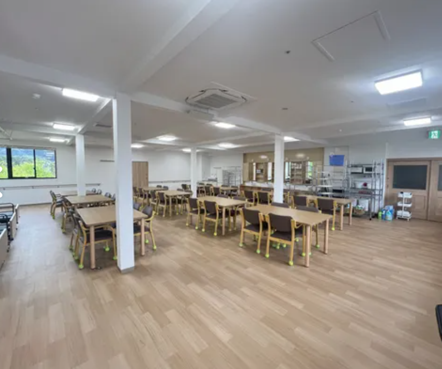 | 居室設備 | エアコン/カーテン/ナースコール/フローリング/フラットフロア/人感センサー/介護用ベッド無償貸与/地上波アンテナ/車椅子対応トイレ/照明器具/空調換気設備/玄関インターホン/防火カーテン/防災設備 |