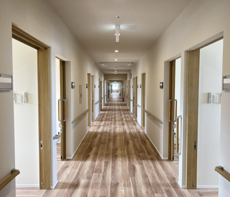 | 居室設備 | エアコン/カーテン/ナースコール/フローリング/フラットフロア/人感センサー/介護用ベッド無償貸与/地上波アンテナ/車椅子対応トイレ/照明器具/空調換気設備/玄関インターホン/防火カーテン/防災設備 |