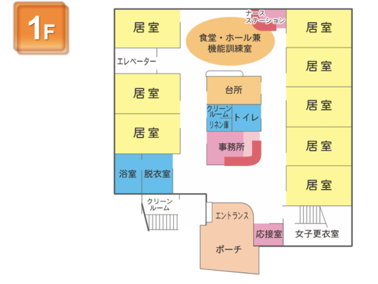 | 居室設備 | トイレ、エアコン、ナースコール、化粧洗面台、収納棚、照明器具 |