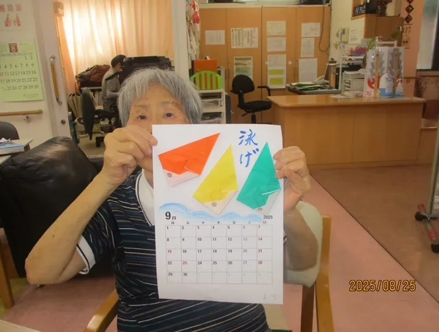 毎月のカレンダーを作成や、塗り絵や折り紙等、みなさんとても集中した楽しまれます。なかには昔取った杵柄で、信じられないクオリティの物も!?