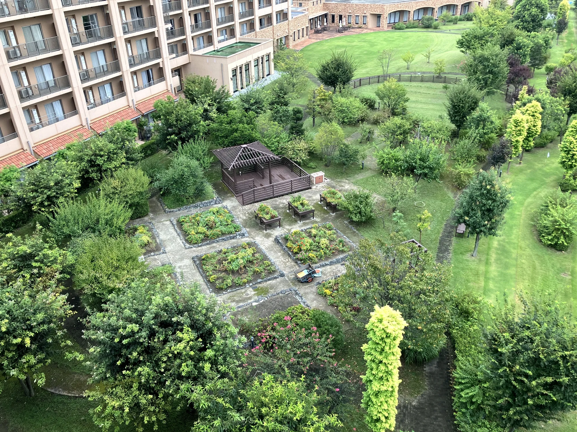 お部屋から眺める花と緑あふれる広大な庭園は、季節の移り変わりを感じることができます。庭園には、季節ごとの草花が植えられ、9ホールのパターゴルフ場も完備、ご入居者様に人気のスポットです。また、施設周辺は自然に囲まれており、静かな環境で散策を楽しむこともできます。