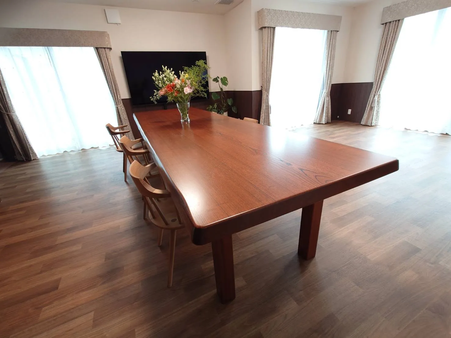 大きな窓から差し込む陽の光 家や家具から漂う暖かみのある木の香りの家。 一歩家を出ると、草木や花に癒される最適な場所が待っています。