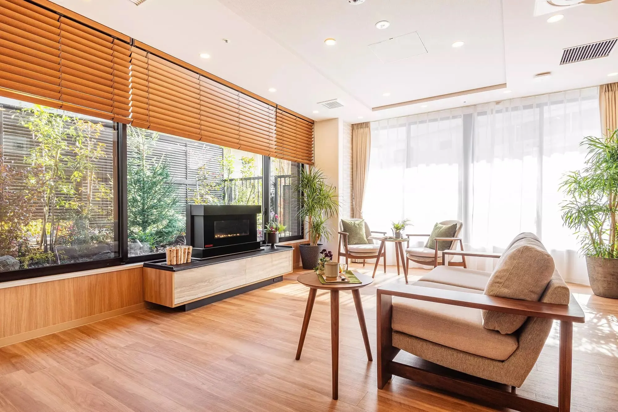 ゆとりある開放的な共用スペース。 居室は約18㎡から約40㎡、ご夫婦でのご入居も可能です。