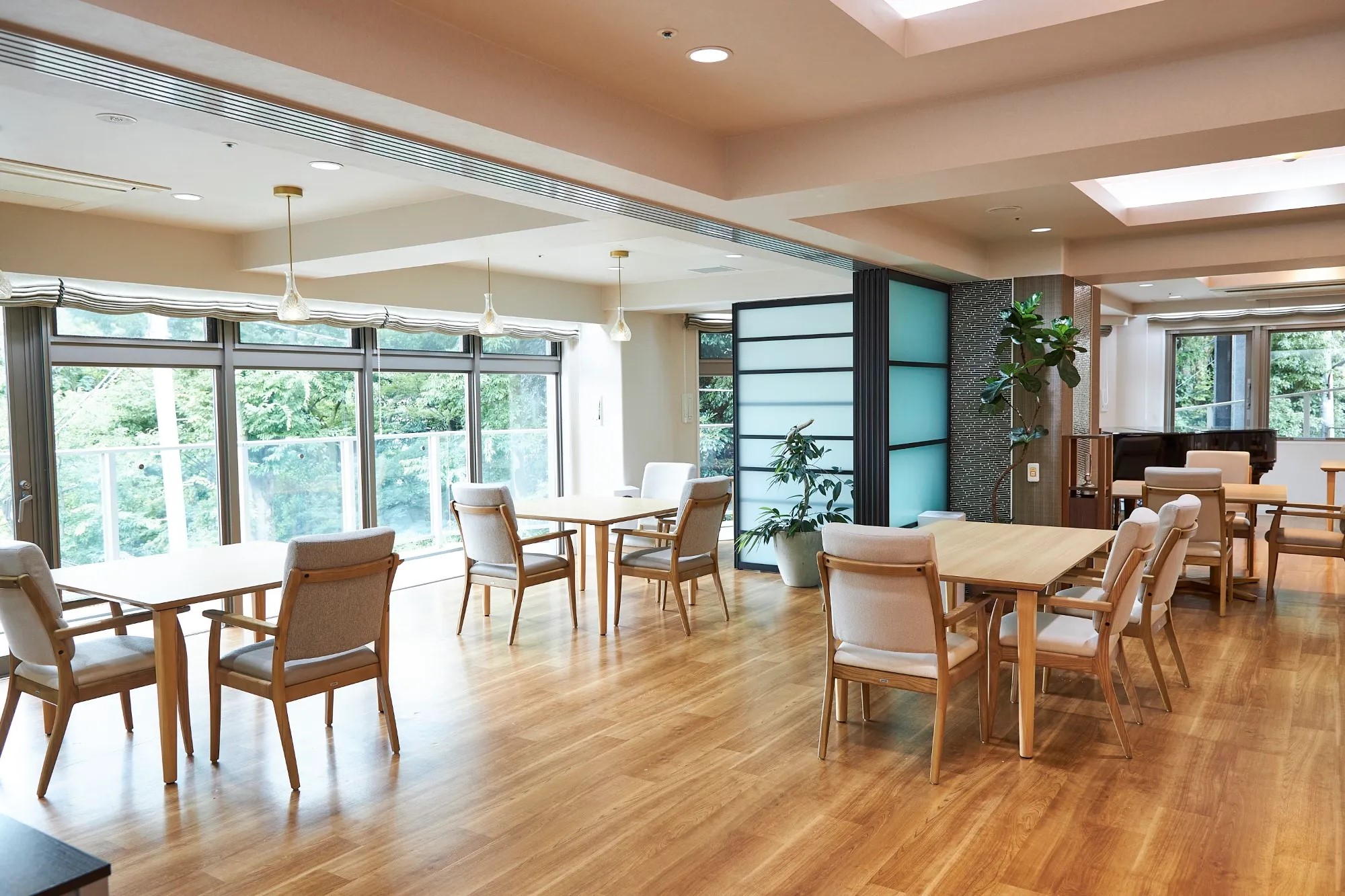 ゆとりある開放的な共用スペース。 居室は20㎡から40㎡、ご夫婦でのご入居も可能です。