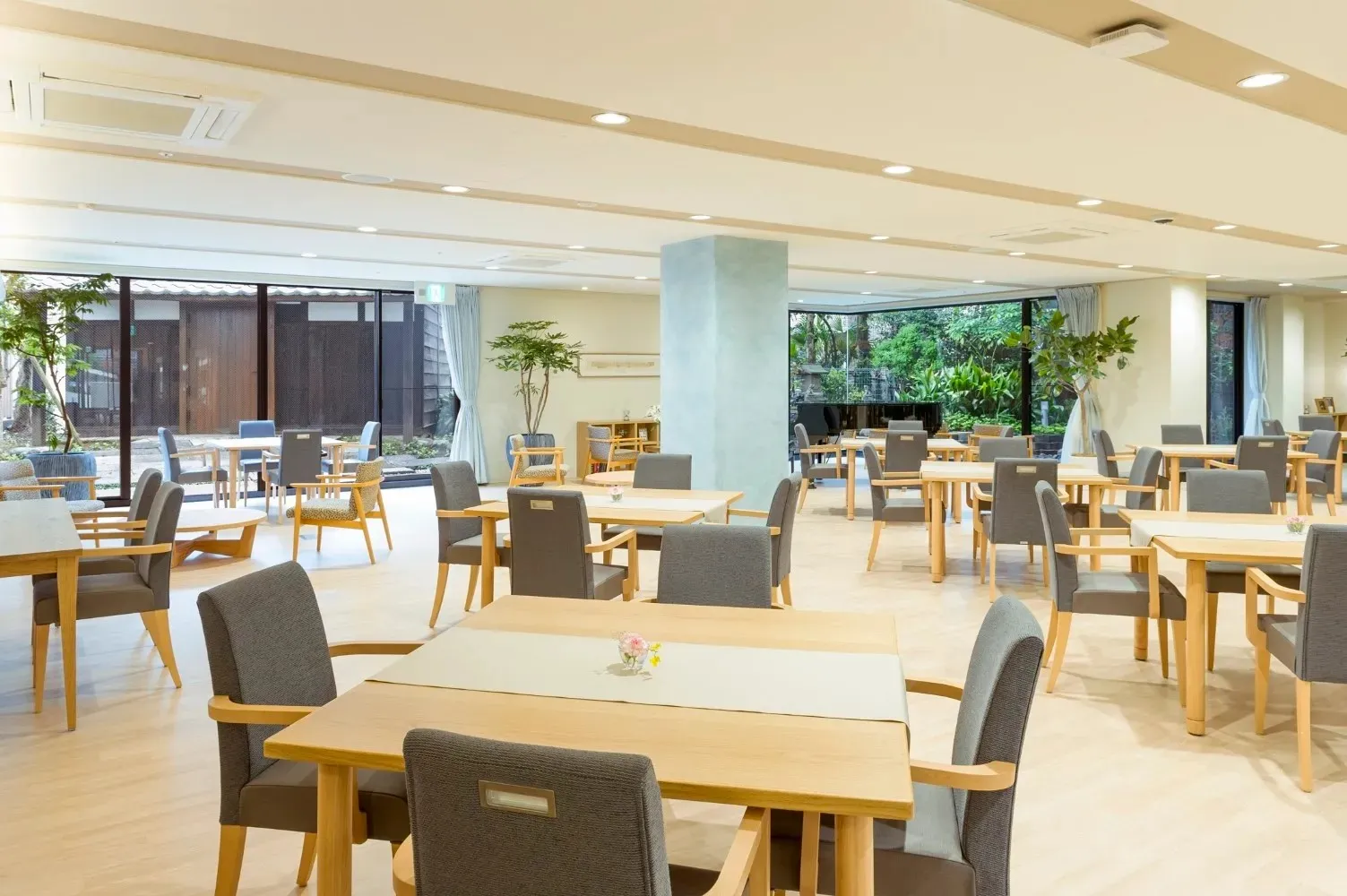 ゆとりある開放的な共用スペース。 居室は約18㎡から約34㎡、ご夫婦でのご入居も可能です。