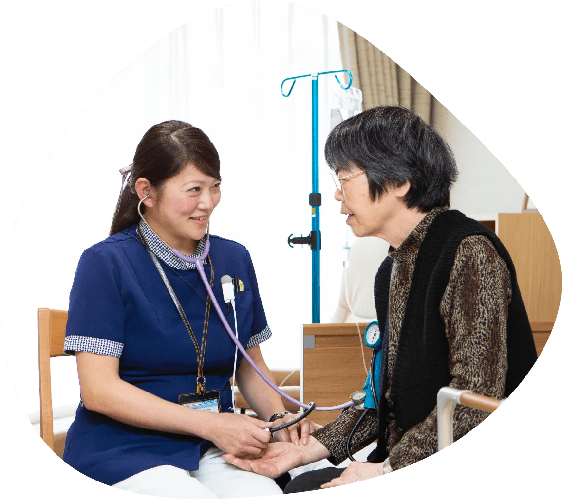 専属の看護師が24時間365日常駐し、 ご入居者の毎日の健康をサポートします。