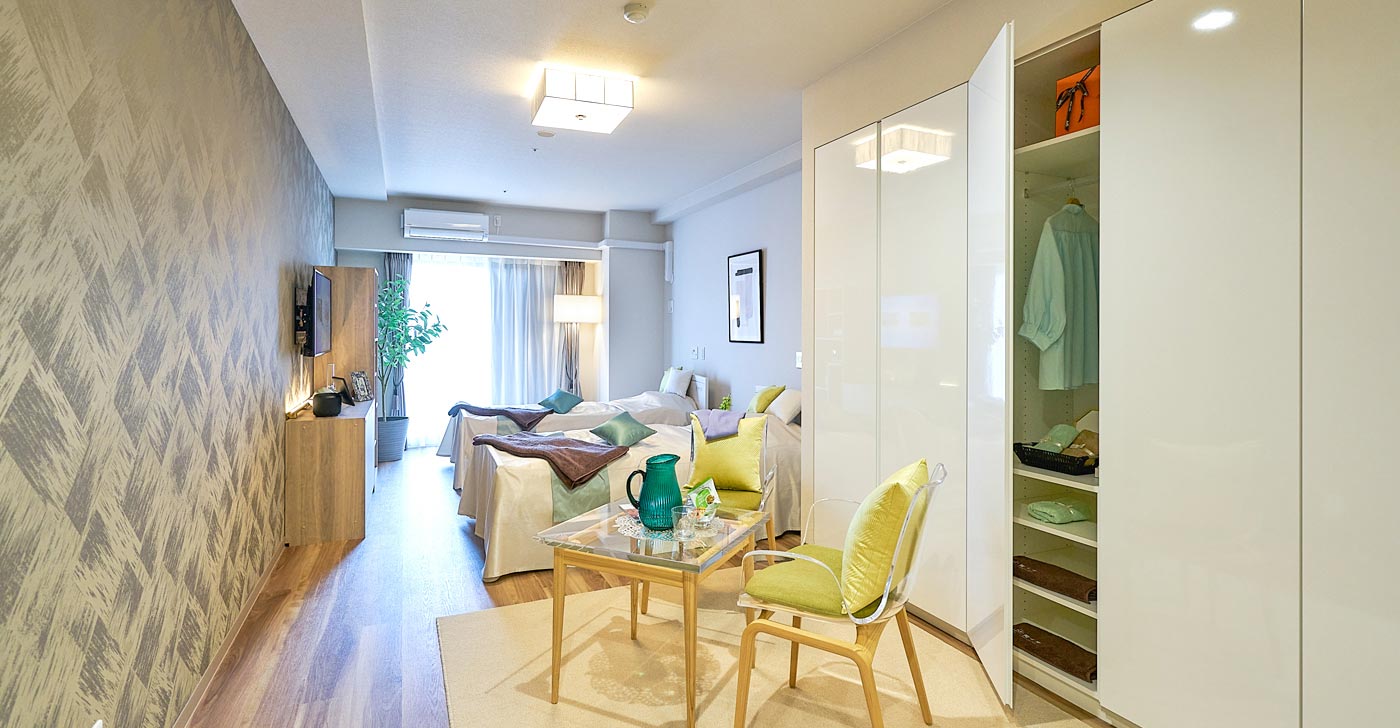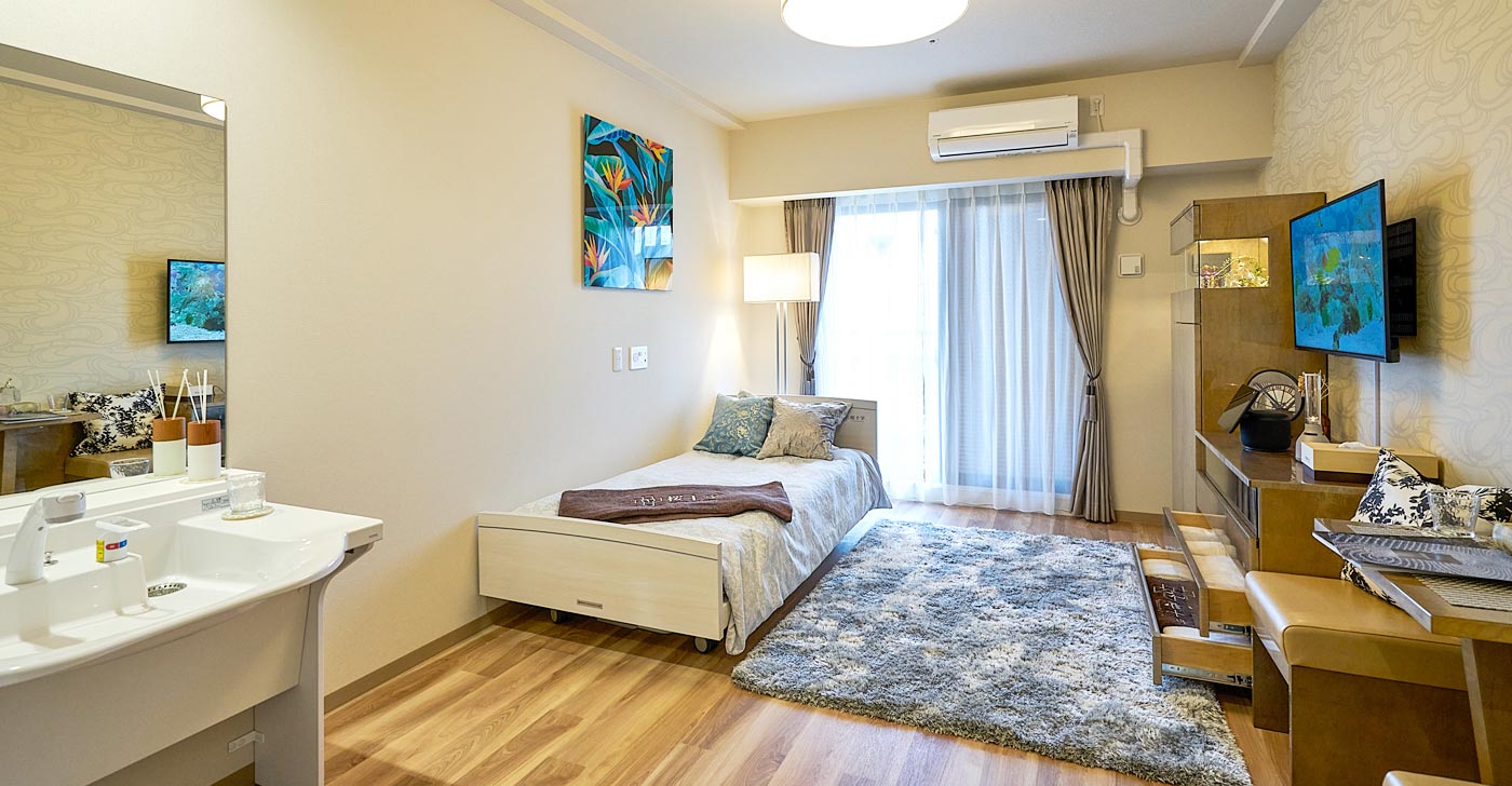 | 居室設備 | エアコン、緊急コール、車いす対応型洗面台、温水洗浄機能付トイレ、収納 |