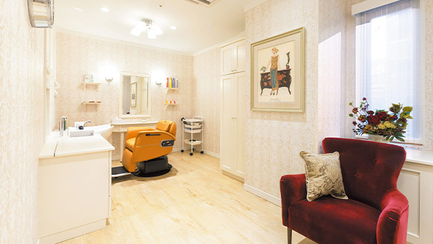 エントランスホールにはフロントを用意し、スタッフがゲストやご家族をサポート。日常生活全般の煩わしい雑事やお困りの事もお気軽にご相談ください。