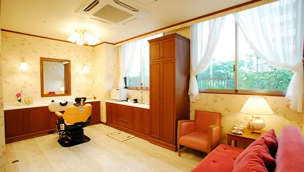 | 居室設備 | メモリーBOX、介護ベッド、緊急呼び出しボタン、トイレ、クローゼット、洗面化粧台、エアコン、照明、デスク、チェア、カーテン |