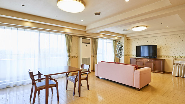 | 居室設備 | 介護ベッド、緊急呼び出しボタン、トイレ、クローゼット、洗面化粧台、エアコン、照明、デスク、チェア、カーテン |