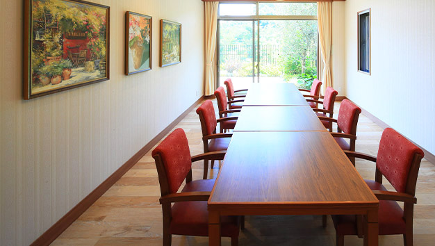 エントランスホールにはフロントを用意し、スタッフがゲスト(ご入居者)やご家族をサポート。日常生活全般の煩わしい雑事やお困りの事もお気軽にご相談ください。