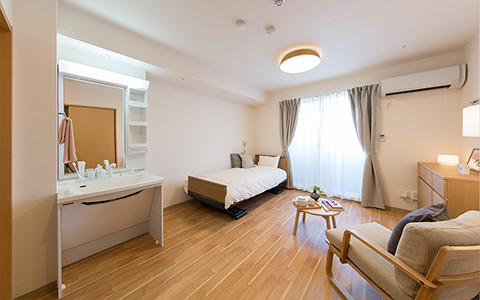 | 共用設備 | ロビー、フロント、エレベーター、ナースコール、スタッフルーム、メールボックス、個人用浴室、厨房室、多目的室、洗濯室、玄関ホール、自販機、談話室、避難設備、防災設備、風除室、ダイニングルーム(食堂) |