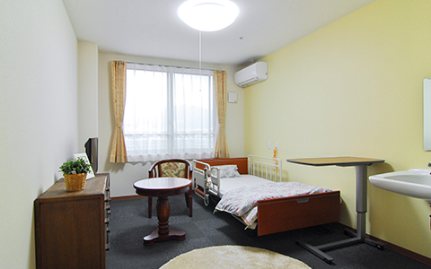 | 居室設備 | カーテン、ナースコール、フラットフロア、化粧洗面台、収納棚、地上波アンテナ、引き戸式ドア(居室内)、温水洗浄機能付きトイレ、照明器具、防火カーテン、防災設備 |