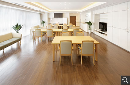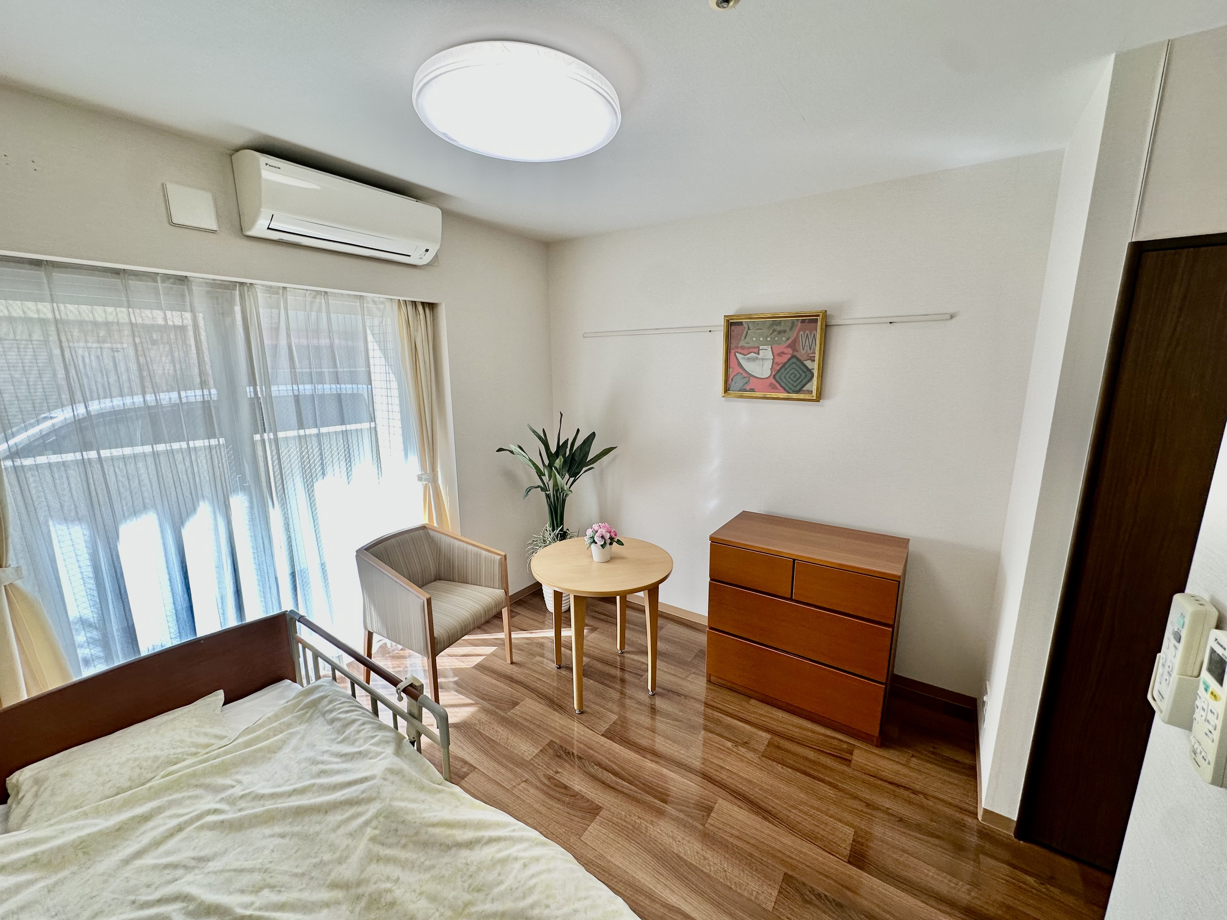 | 居室設備 | エアコン、イオン発生機、電動ベッド、トイレ(温水洗浄便座付)、洗面台、カーテン、クローゼット、ナースコール、室内照明、チェスト、ユニットバス(5階居室のみ)、ミニキッチン(5階居室のみ)、室内洗濯機置き場(5階居室のみ) |