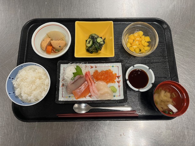 - 【美味しいお食事】 ご入居様の日々の暮らしを彩るお食事は、ホームの厨房で調理しております。季節に合わせたお食事はもちろん、毎週日曜日はセレクト食を提供し、入居者の皆様からもご好評頂いております。また、入居者様のお体に合わせたお食事形態もご用意しておりますので、どなたでもおいしく召し上がっていただけます。