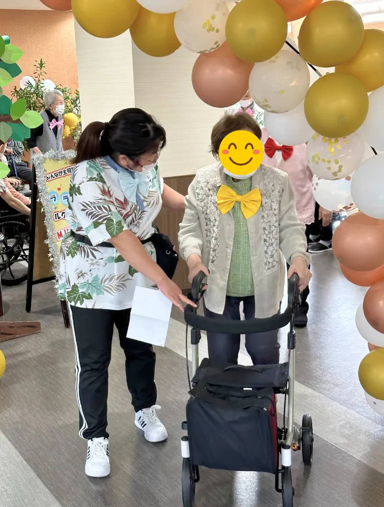 - 施設近くには遊歩道があり、お散歩コースとして最適です。春には桜のシャワーを浴びながら、入居者様とスタッフみんなでお散歩。お花見をはじめ、一年を通して工夫を凝らしたイベントやレクリエーションを開催しています。夏には、冷たくて甘いスイカを楽しむスイカ割りを実施。落ち着きのある住宅街で四季を感じながら、穏やかな生活をお送りいただけます。