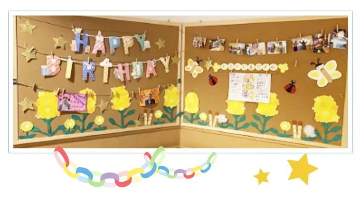 レクリエーション活動で意欲の向上! 毎月のお誕生日カードを作成、またイベント等に応じた飾り付けで季節を感じましょう!