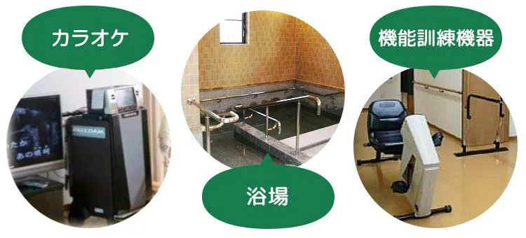 デイサービス が隣接しています。 車いすの方も入浴して頂けます。 機能訓練機器やカラオケなど、ご利用頂けます。