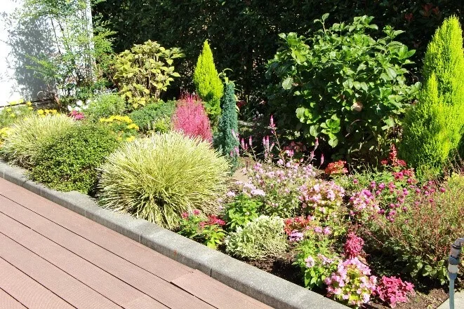 燦々と陽が差す中庭は、常に花が植えられており、自由にガーデニングを楽しむこともできます。 秋にはモミジが美しく四季を通じて楽しめます。 また、ゆったりとした敷地の隣には、市民農園があり様々な季節の野菜の成長を見る事が出来ます。 ダイニングに面して大きなウッドデッキが広がっており、お天気の良い日は気持ちの良い空間が広がっています。 花壇は季節により葉の入れ替えが行われダイニング内からも鑑賞可能です。