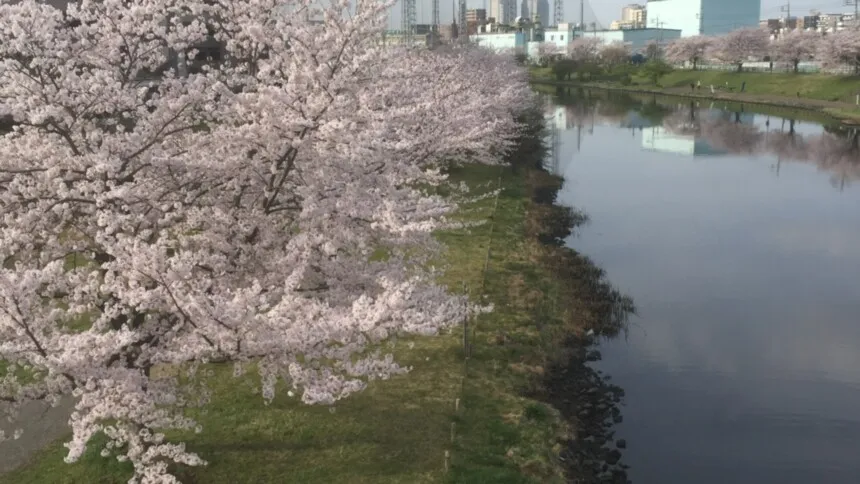 近くには中川があり、毎年桜がとてもきれいです。 川周辺は散歩コースになっており季節を感じることができます。 また、スカイツリーをのぞむことができます。