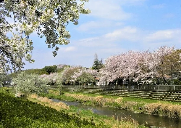 目の前のふれあい公園に沿って【野川】があり、春には綺麗な桜が咲き誇ります。 野川沿いは散歩コースにもなっていて、健康維持にお役立てください。
