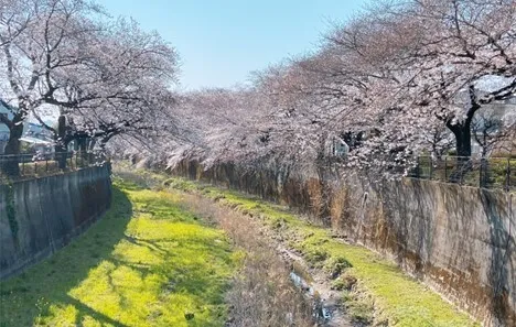 そんぽの家S武蔵砂川の建物の周りには、桜や花水木、つつじ、銀杏の木があり色鮮やかな四季を楽しむことができます。 徒歩約2分の川沿いに桜並木があり、春には圧巻の桜に見応え十分です!