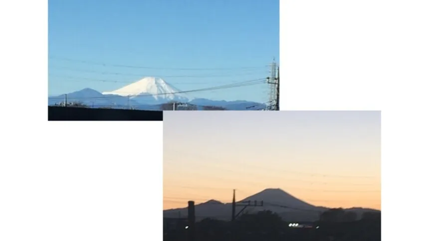 3F西側のお部屋からの「富士山」。 全部のお部屋から見れるわけではありませんが、このように景色は抜群に良いです。