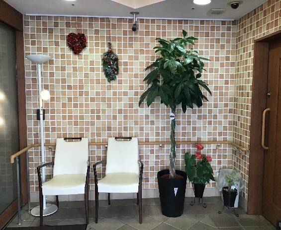 通院や外出の際に待合室として利用いただけます。 緑豊かな空間でのひと時をお楽しみください。 季節にあわせて緑の風景が変わります。