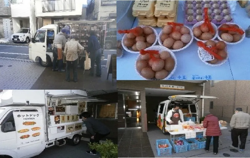 月に1回、様々な移動訪問販売がそんぽの家S羽田に訪れます。 パン屋さんでは焼き立てのパン、たかはしたまごでは濃厚な美味しいたまご、フードトラックではホットドッグやポテト等、ご入居者さま以外にも近隣の方も購入され、地域とのつながりがあります。