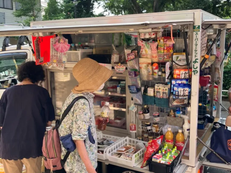 歩行が心配な方や自分で買い物をしたいが遠くにはいけない方には移動販売がおすすめ! 沢山の移動販売が施設の前まで来てくれます。パン屋さん、スーパー、お魚屋さん、焼き鳥屋さん。近隣の方も買いに来る人気の移動販売となっております。見て選んで買える。そんな「ふつうの生活」が実現できます。