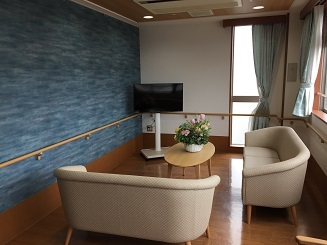 2~4Fエレベーター横に談話スペースがあります。ご入居者さま同士のコミュニケーションを取る場として、一緒にテレビを鑑賞いただく場として利用していただいております。 また、訪問歯科や訪問理美容を行う場所としても活用しております。