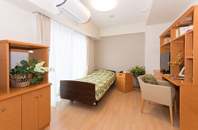 | 居室設備 | 介護ベッド、洗面台、収納、トイレ、エアコン、照明、TV端子、電話ジャック |