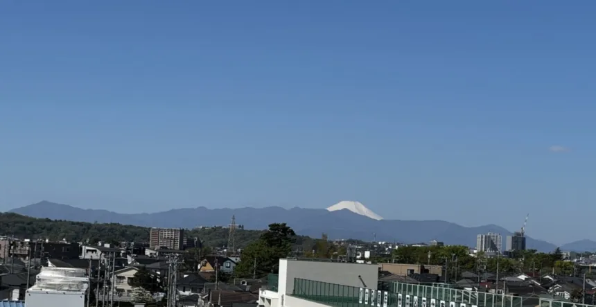 5階のラウンジからはどなたでも富士山を望むことができます。 東に位置する大山から丹沢山系、高尾山まですべてを見渡せる、当ホームの絶景スポットになっております。