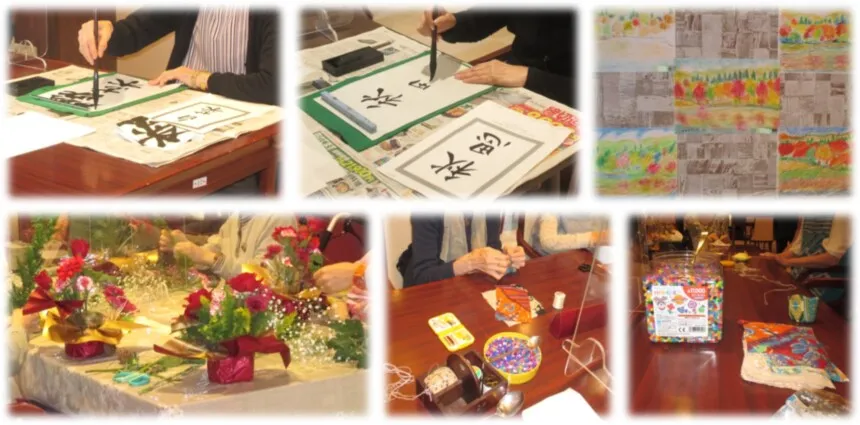 フラワーアレンジメントや書道、キープアップ体操等バラエティーに富んだアクティビティをご用意しております。 ご希望に合うお好きなアクティビティをお選びください。