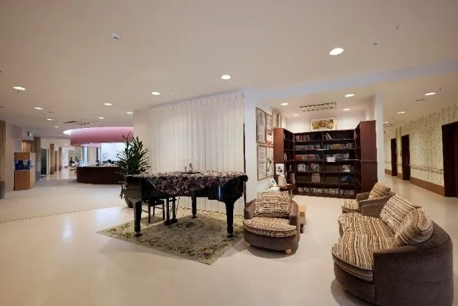トゴールの湯あり、グランドピアノあり、共用スペースはとても広く作られております。 他フロアのレクリエーションの参加も可能です。