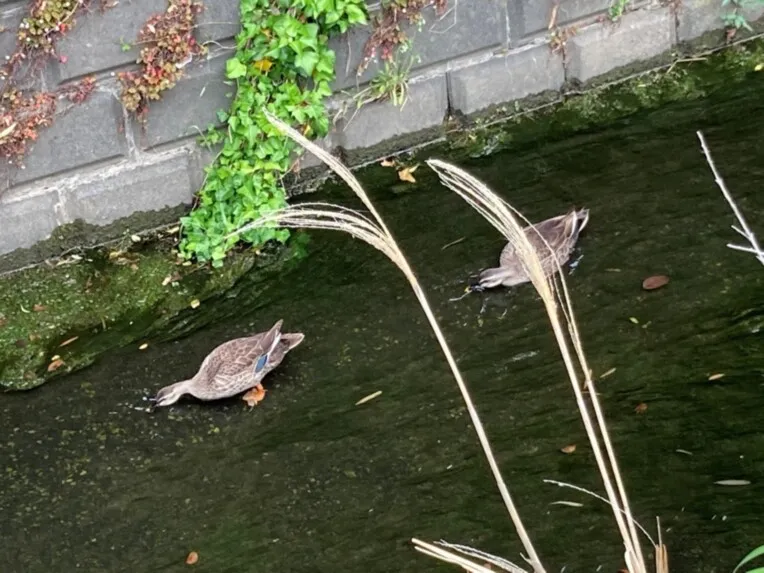 日野川の支流が流れ、四季折々の豊かな自然が楽しめます。 春には桜、初夏にはカモの親子を見ることができます。 秋、冬にかけて木々の紅葉する様子も、お部屋から眺める事ができます。