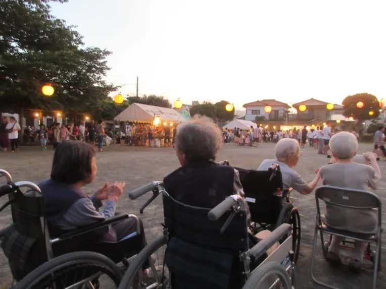 こども神輿に参加されたお子さまたちをホームにお迎えして労い、どんど焼きでは町内のみなさまと無病息災をお祈りします。 酒匂川堤の芝桜の咲き誇る花を地域のみなさまと観賞したり、毎年夏に開催される新田公園の盆踊りには欠かさず参加するなど、地域交流が盛んなホームです。ご入居されたみなさまの「顔が笑い、心が笑い、脳が笑う」生活を、地域のみなさまと一緒に支えてまいります。