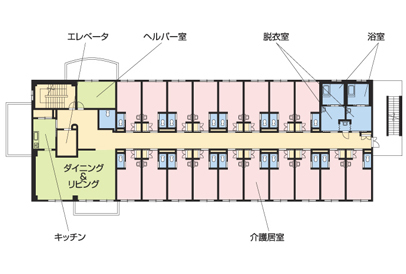 | 居室設備 | 洗面、暖房便座付トイレ、ナースコール、収納、下駄箱、固定電話設置可能 |