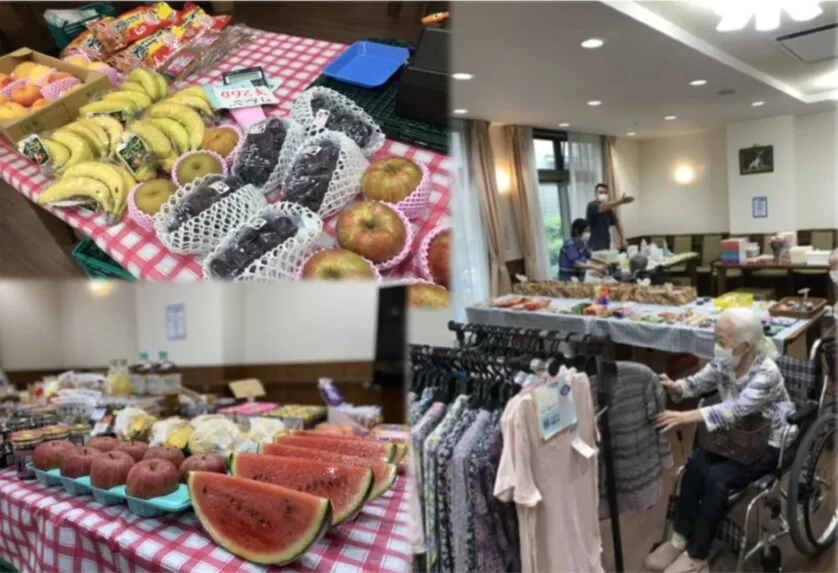 定期的に生鮮食品の販売・日々の日常雑貨の販売。 訪問喫茶による名古屋ならではの「モーニング」の体験ができます。 ホーム内での生活を豊かにお過ごしいただけるよう取組んでおります。