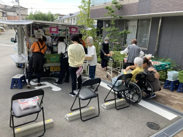 毎週土曜日の午前中にダイエーさんが移動販売でホームにきてくださいます。 嗜好品をはじめ、衣類などもあり品揃えは豊富です。