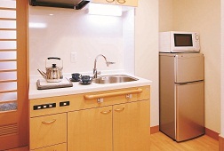 | 居室設備 | 洗面台、トイレ、収納、下駄箱、浴室、ミニキッチン、洗濯機スペース、玄関収納椅子、エアコン、TV端子、電話ジャック、インターホン、緊急呼出装置 |