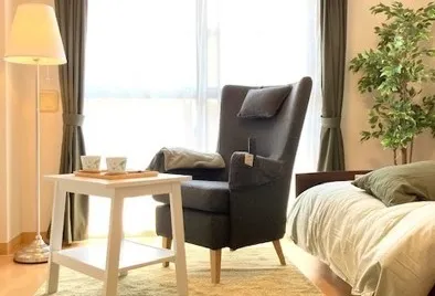 こちらは当施設のモデルルーム。 明るい光が差し込む室内は、 落ち着いた色合いで統一され、心安らぐ住空間となっています。 必要な設備が整いながらも、ご自宅のような“自分の居場所”として 過ごしていただけるよう工夫しています。 「ここなら安心して暮らせそう」「思ったより広くて快適」―― 見学された方からは、そんな声が多く寄せられています。