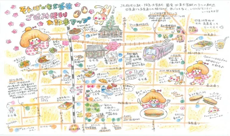 当施設は、利便性に優れており、快適にご生活していただけます。コンビニエンスストアが隣接しており、徒歩圏内にはスーパーや薬局、パン屋、飲食店など…充実しております。 春に桜が満開に咲く公園が近くにあり、散歩やリハビリに最適!歴史ある寺院・神社も多くあり、歴史好きな方にも! 徒歩圏内に、内科や耳鼻科、整形外科など…病院も多数あり、安心してご生活いただけます。 また、阪急の大宮駅やJRの丹波口駅、市バスのバス停からも近く、外出や家族様のご面会にも最適です!